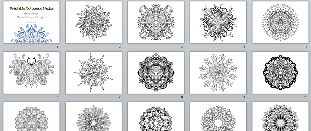 Well, go grab those unused felt pens or coloured pencils and download these original digital colouring pages. This collection of images were inspired by the spiritual Mandala movement, where monks would create intricate patterns in sand as a means to meditation.